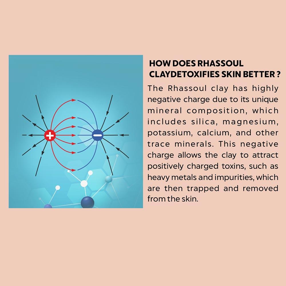 Moroccan Rhassoul Clay is a natural, mineral-rich clay that has been used for centuries for its various skin benefits. Here are some of the skin benefits of Moroccan Rhassoul Clay: