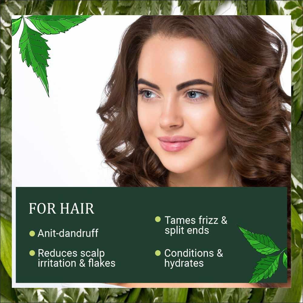 Bio Organic neem powder booster the hair length and growth. Neem hydrates you scalp, nourish the follicles through roots and tighten the grip of hair from deep roots within that ultimately stops hair fall or thinning of the hair. It helps the hair follicles to become stronger and also encourages hair growth.