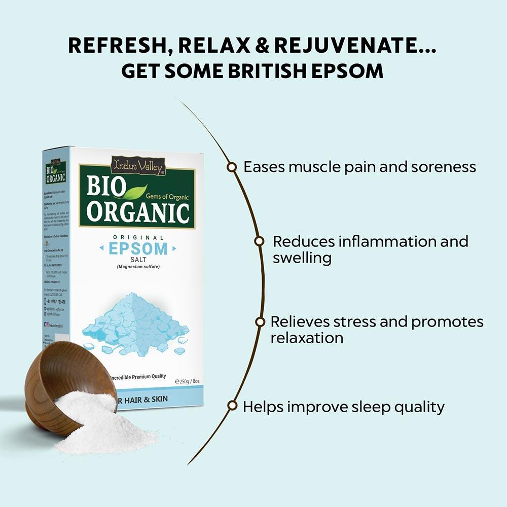 Yes, Indus Valley Chemical-free Epsom Salt powder does wonders for the skin. It heals dry skin with extraordinary radiance and smoothness. Epsom Salt cures and moisturizes dry and chapped lips. It is believed that soaking the feet in Epsom Salt cleanses away toxins and heavy metals from the body. Use organically procured Epsom Salt for head-to-toe wholesome beauty.