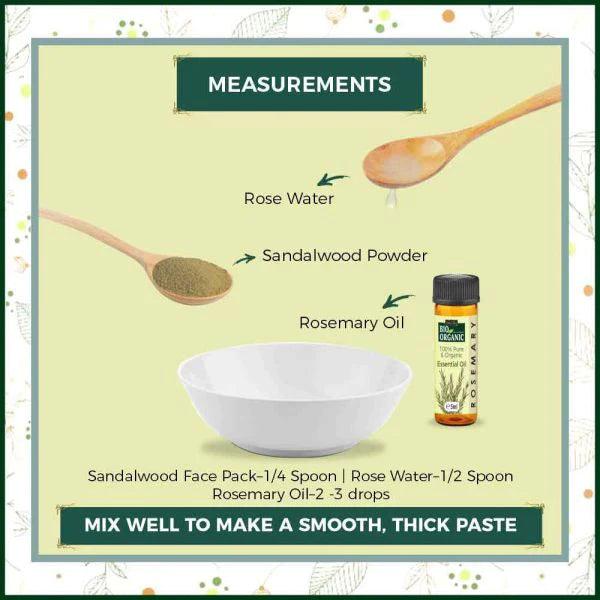 Sandalwood face pack for skin comes with powerful astringent and antioxidant properties that refresh the skin, cool it down, battle acne, fade away suntan, pigmentation, lighten dark spots,tighten the skin and shrink open pores. Its moisturising properties hydrate the skin. Its anti-inflammatory properties reduce skin irritation and redness and improves skin complexion.