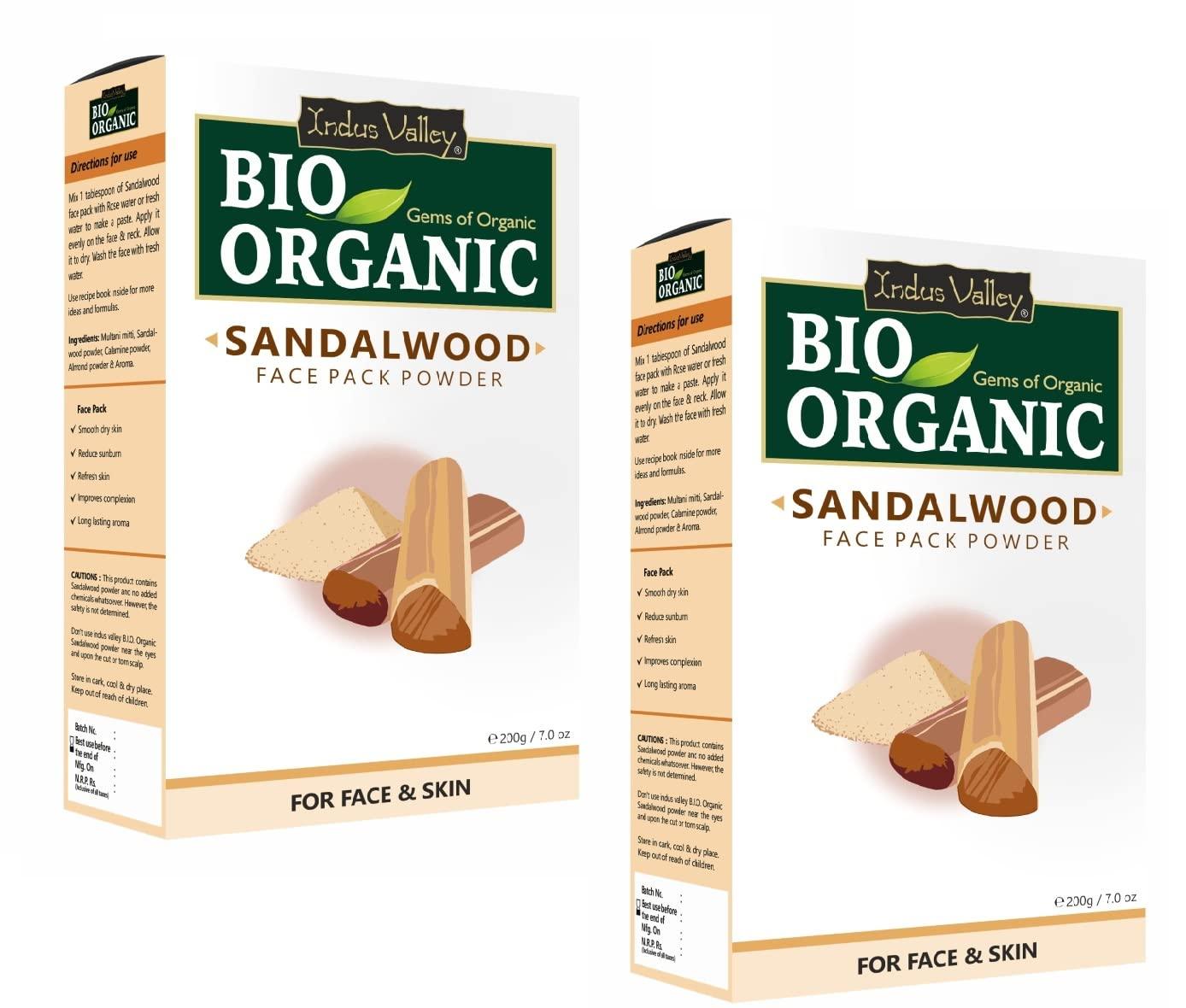 Indus Valley Bio-Organic Sandalwood Face Pack Powder is a skin-soothing mix of shade-dried barks of Indian sandalwood (Santalum album) trees, embellished with the goodness of organic almond powder, Natural calamine clay and multani mitti powder. With superior skin healing properties, it helps soothe acne, wrinkles and gives a blemish-free skin when used on a regular basis. It is suitable for all types of skin.