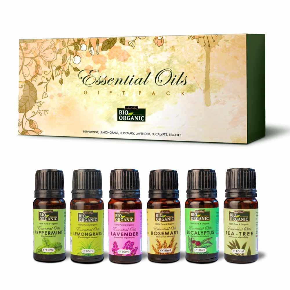 Indus Valley Essential Oils Gift Pack is a set of 6 best essential oil combo put together for your holistic self-care and relaxation. Tea Tree oil comes as an all-natural fix for acne and breakouts. The uplifting and invigorating properties of Peppermint and Eucalyptus soothe the scalp, relieve tired and aching feet. Rosemary essential oil stimulates hair growth by stimulating blood flow on the scalp. The antioxidant properties of Lemongrass and Lavender work as effective natural remedies for alleviating anxiety, relieving stress, moisturizing and maintaining a clear glowing skin. The heavenly oils are encased in beautiful biodegradable gift boxes making them perfect for elegant gifting on any occasion.