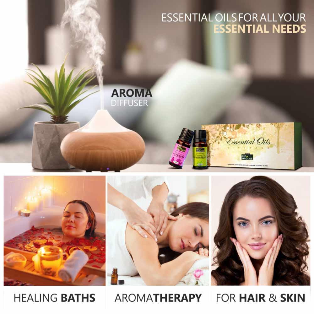 Enjoy super-exotic aromatherapy with the 100% natural premium grade oils, or use them in aroma diffusers at home or office for creating that heavenly ambience. The sweet, floral, citrus and earthy scents of this essential oils combo pack effectively induce calming and relaxing effects. They powerfully invigorate the senses, usher in a positive mood, provide a boost of energy and induce a soothing sleep experience, enabling comprehensive healing of the mind and body.