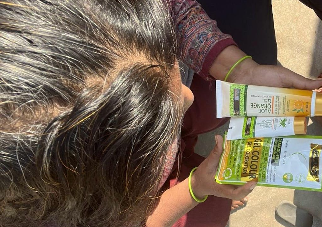 If any reaction occurs, stop the application immediately and rinse your hair and scalp thoroughly with cool running water. Apply pure aloe vera gel or any soothing remedy you usually trust. If symptoms like redness, swelling, or irritation persist, please consult a dermatologist immediately and keep the product pack handy for reference. Allergic reactions are rare with our natural formulations, but your safety always comes first. That’s why we strongly recommend doing a patch test before every application, even if you’ve used the product before.