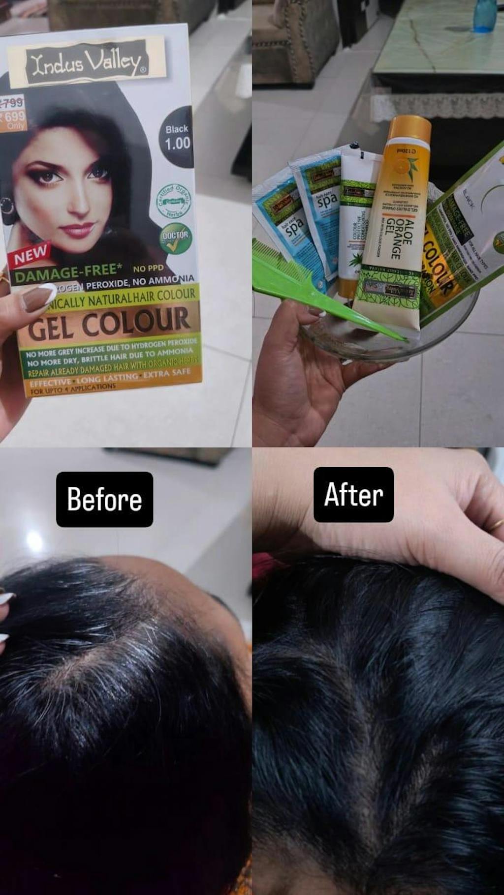 Unlike chemical dyes, Indus Valley Damage-Free Gel Hair Colours contain no Ammonia, Peroxide (HPO), or PPD, making them gentler on hair. Because they don’t use strong fixers, regular application is key.