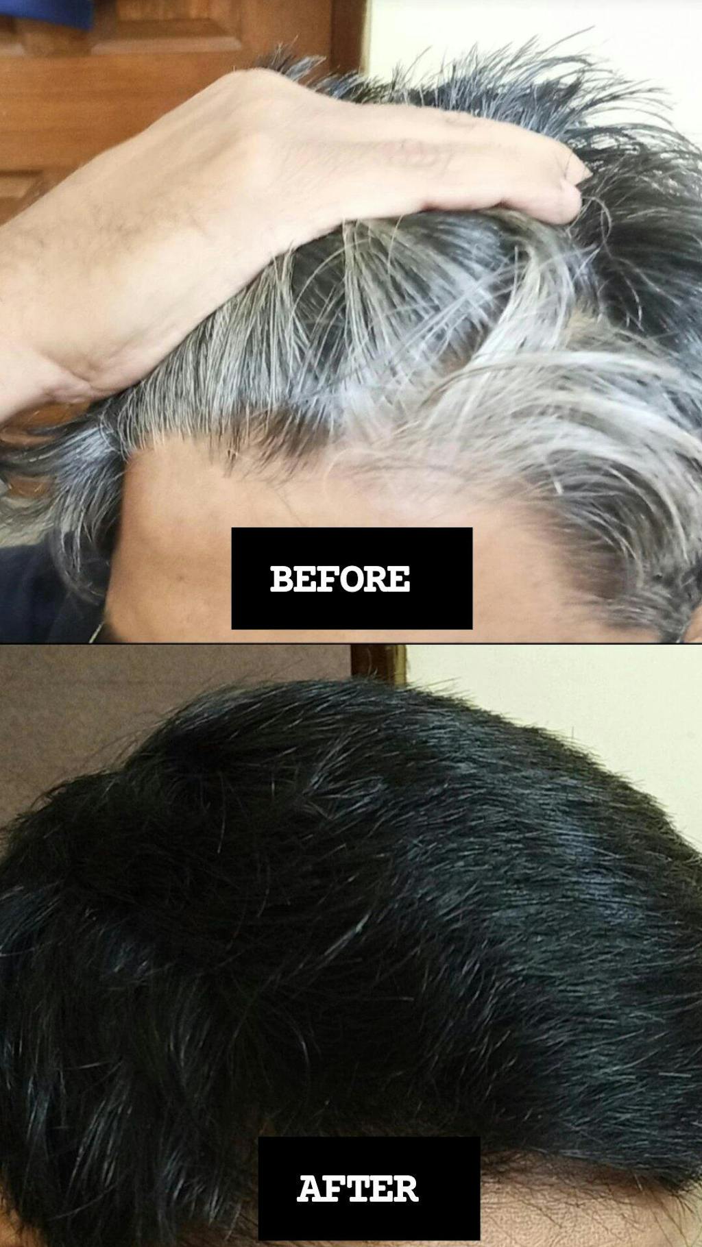On black or dark brown hair, the Burgundy shade blends with your natural hair pigment. As a result, it may appear deep brown or almost black, with a subtle Burgundy shine visible in bright sunlight. On grey or lighter hair strands, Burgundy reflects more clearly and shows richer reddish tones. With 2–3 consistent applications, the reddish pigments layer gradually, and the Burgundy tone starts showing more vibrantly across the hair. This is how 100% natural, non-bleaching formulations work—gentle, progressive, and damage-free.