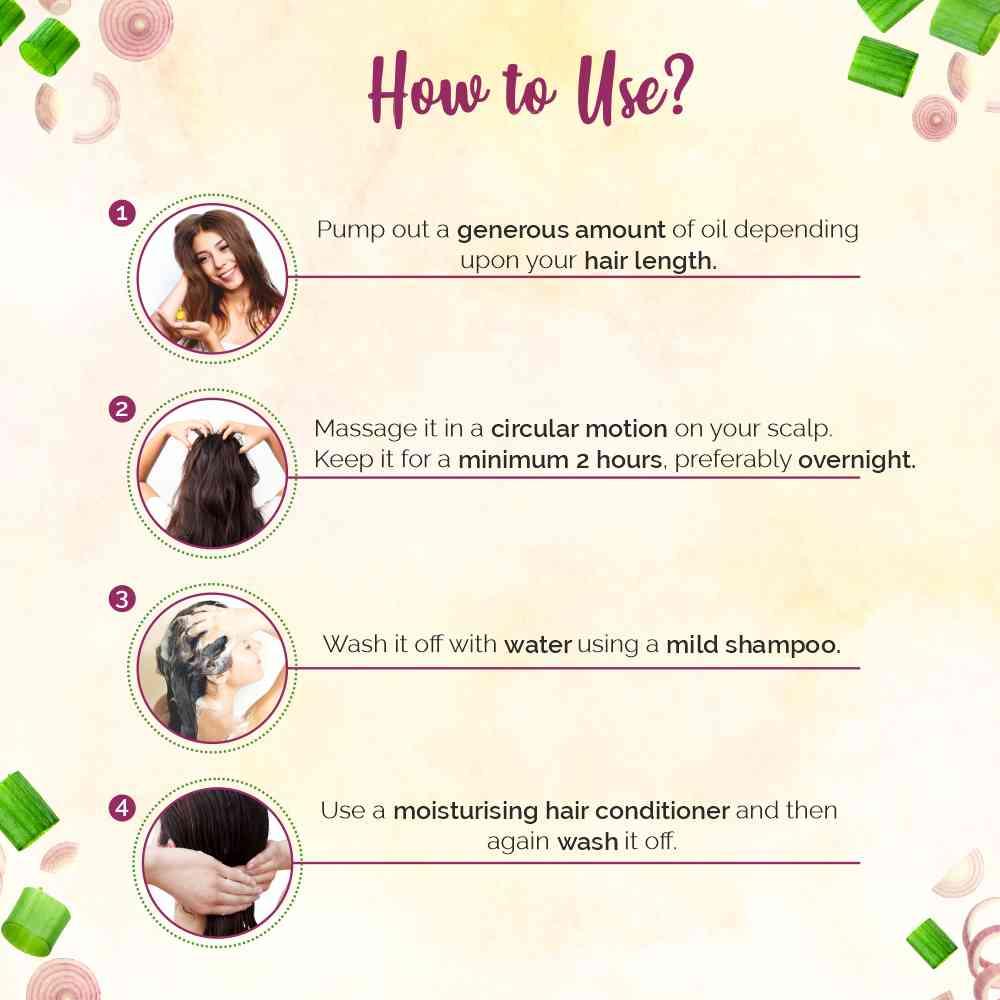 The onion oil for hair growth is loaded with powerful antioxidants, sulphur, potassium, multiple vitamins and omega fatty acids, the oil offers enhanced hair care. It also treats chemically damaged hair and scalp.
